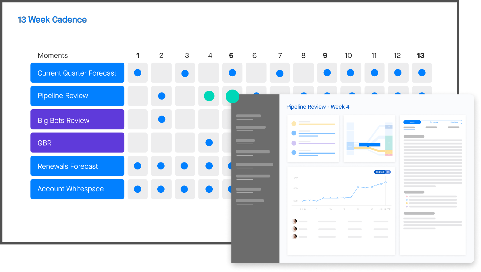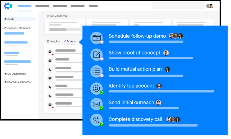 - Revenue Cadences ensure process adherence across the org.