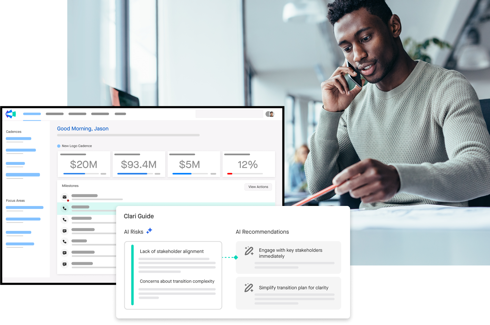 Set your strategy with Revenue Cadences and execute it with Clari Guide — surfacing what matters and guiding the right next action.