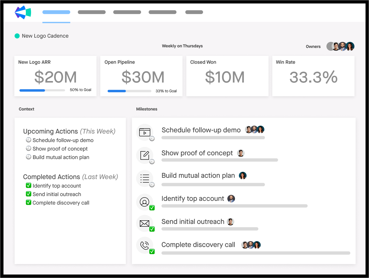 Unify GTM teams in one workspace to track progress, make decisions, and take actions that deliver high-impact results.