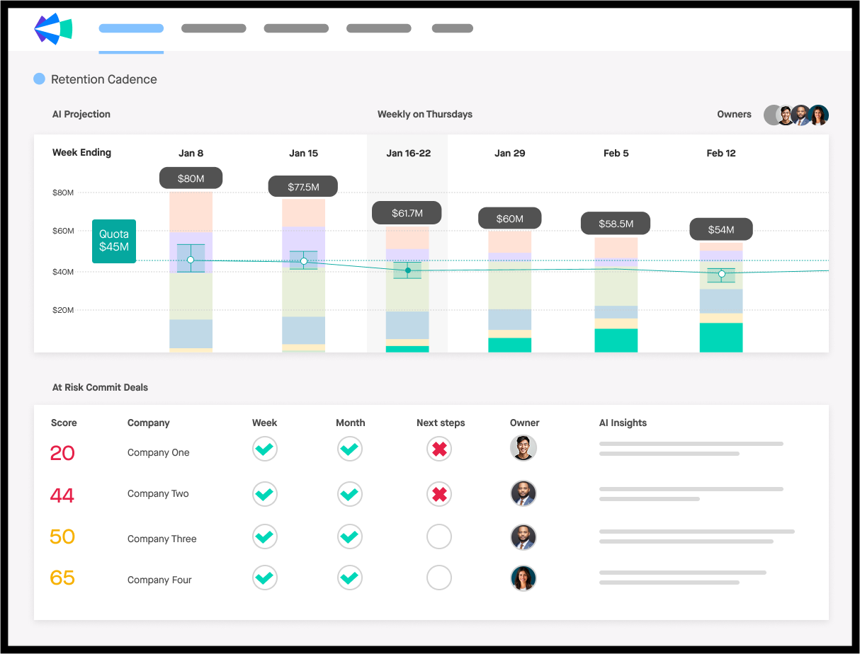 - Focus each week on pipeline building, deal health, renewals and every aspect of your sales cycle.