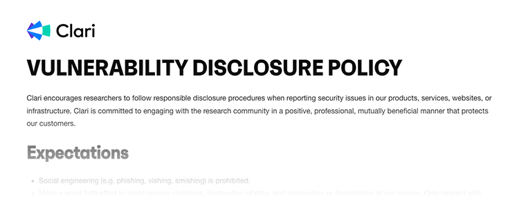 Clari undergoes independent third-party audits to validate and certify our security, data privacy, and compliance controls. In alignment with our commitment to transparency, customers can access compliance reports, certifications, and security documentation in our Assurance Center.